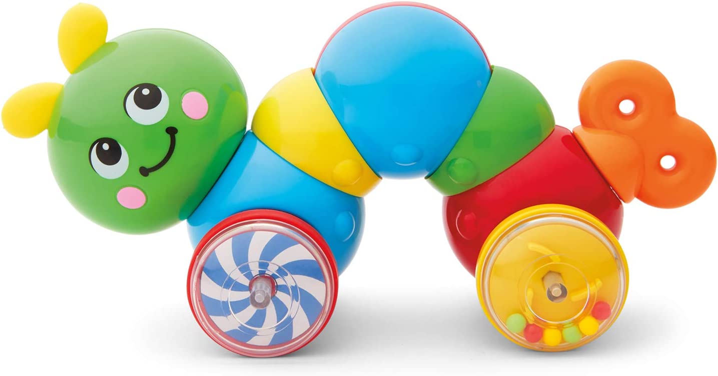 Press-N-Go Inchworm is sure to keep your little ones excited about getting active. This toy features bright colors and moving beads in the wheels to attract kid’s attention. Press down on the inchworm’s back and watch it zoom across the floor! Our Press-N-Go Inchworm engages and enhances children's fine motor and problem solving skills, and also teaches them cause and effect learning. This toy is ideal for broadening mental faculties through creative and active play in young children, ideally toddlers and preschoolers. This classic safe toy encourages walking and crawling. Like all Kidoozie products, the Press-N-Go Inchworm was built using only safe and top-quality materials that will last for years to come.