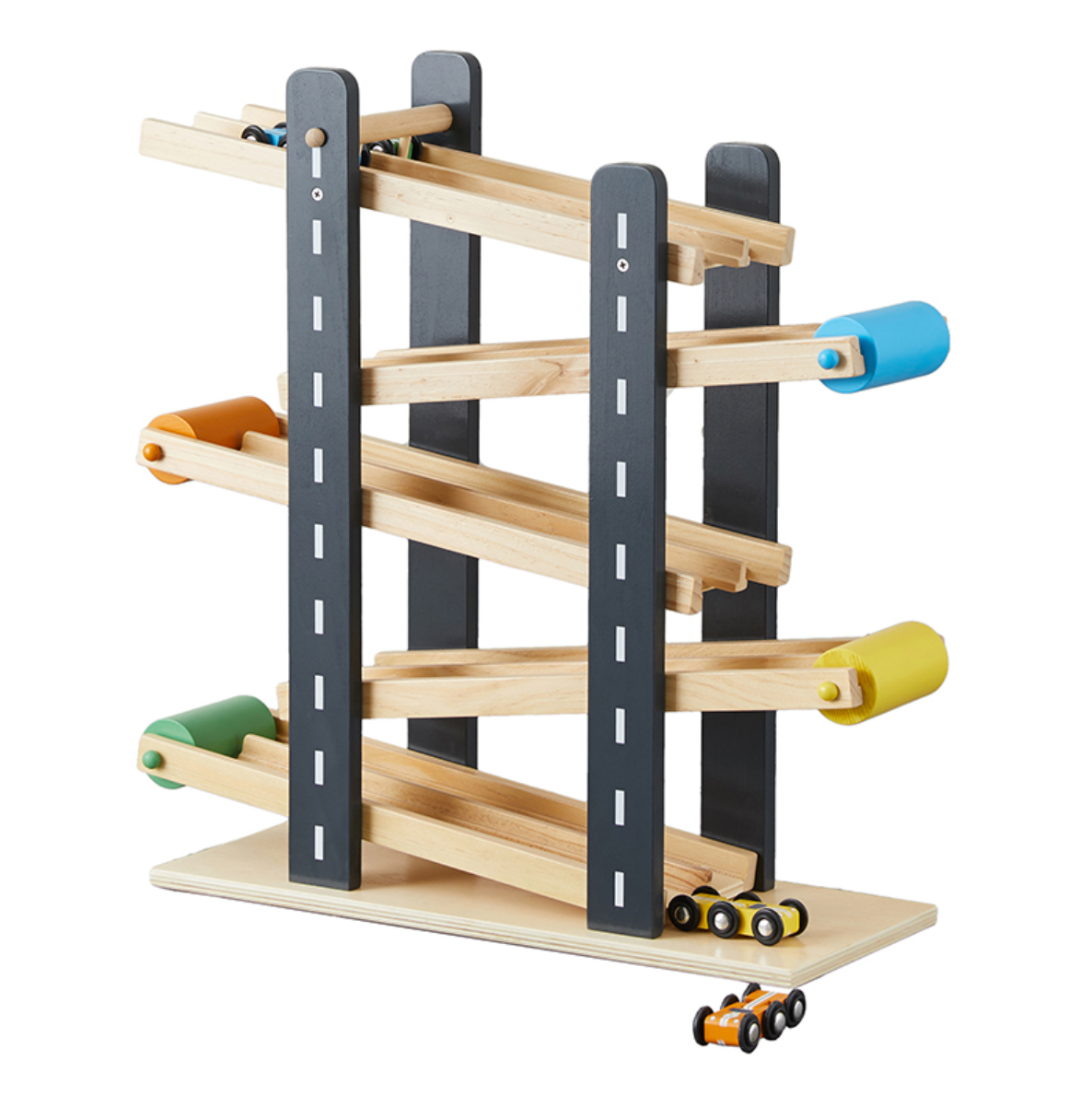 They’ll be off to the races with our Fast Track. Brightly painted with non-toxic paint and 5 natural wood slopes let the races begin. Includes 4 race cars for independent play or with friends.