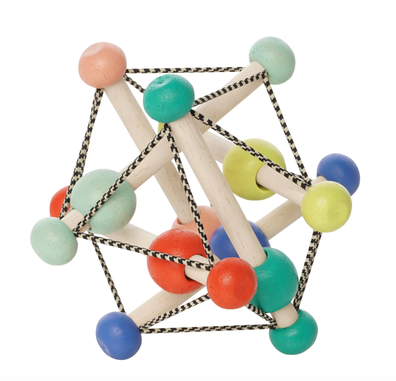 A smaller version of the award-winning Skwish! Skwish is a one of a kind wood rattle and teether toy design made from renewable rubberwood and strung together with durable elastic cords. It squishes and returns to its original shape, with beads that slide and rattle. The unique design offers tactile, sensory play while doubling as a teether and rattle toy. It's easy to grasp, encouraging fine and gross motor skill development while providing cognitive and visual stimulation. The on-trend color pallet and striking appearance doubles as room decor - perfect for any nursery.