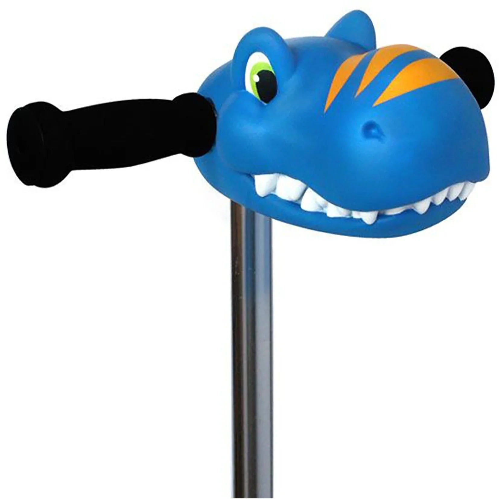 Bring a friend along on every ride with a colorful, funky Scooter Head! Choose from a variety of characters to make your adventures even more fun. They attach simply to the T-bar of your scooter: simply widen the grip on the back, pointing the mouth toward the sky and pressing toward the vertical T-bar. No need to move the grips; your Scooter Head can rest on top of them. Next, simply push the nose down so it’s a snug fit on your scooter. Now you’re ready to cruise!